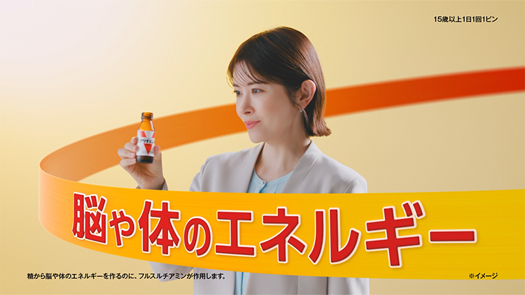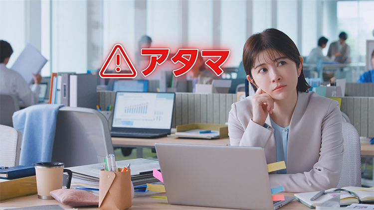 宮澤エマさんが出演するTVCMでは、アリナミンVは、カラダの疲れだけでなく、頭の疲れにもよく効くことをお伝えします。