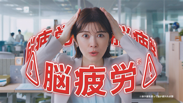 そこで、カラダと頭の疲れに効くアリナミンVを飲んで、気持ちを切り替えて前向きになる様子を描いています。
