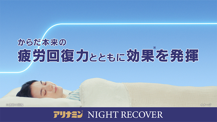 仕事や家事、推し活など、毎⽇いろいろがんばっていると、ただ寝るだけじゃ回復しきれないこと、ありませんか。そんな時には、アリナミンナイトリカバーがおすすめです。