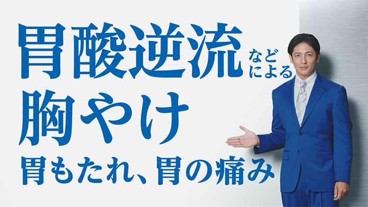 胃酸逆流などによる胸やけ、胃もたれ、胃の痛みに。