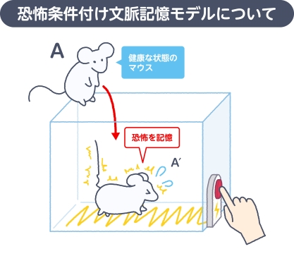 実験では、マウスを小さなケージに入れ、床に敷かれた電線で軽い電気を流して驚かせます。電流は人が触れるとピリッと感じる程度の弱いものですが、マウスにとっては怖い体験です。マウスはその体験を覚え、次に同じケージに入ると恐怖反応を示します。この反応は「フリージング」と呼ばれ、身動きせずじっと固まる行動として観察されます。