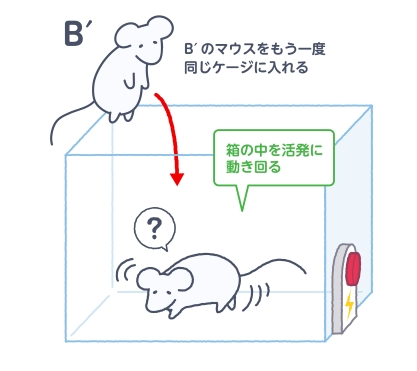 スイッチを押していない(=電気を流していない)状態でも、恐怖を記憶しているマウスは箱の中で縮こまって動かなくなる。