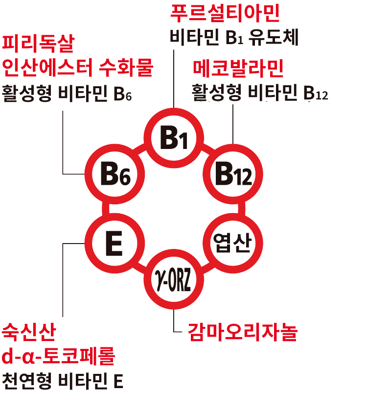 푸르설티아민, 피리독살 인산에스터 수화물, 메코발라민제제 엽산 함유