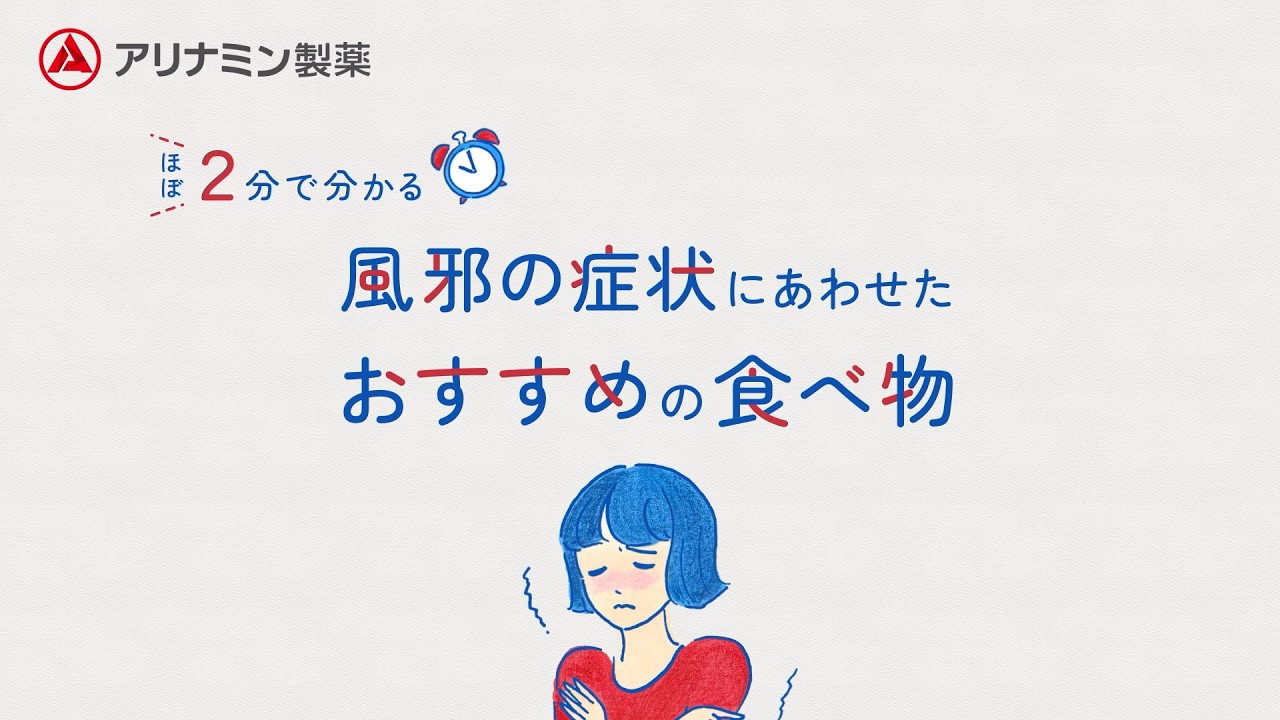 風邪のときにおすすめの食べ物を約2分でポイントを理解できるよう、内容をコンパクトにまとめた解説動画はこちら
