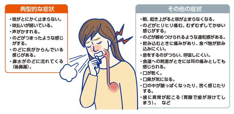 LPRDでは、とにかく咳が止まらず眠れなかったり、人前で咳が出るのが気になって外出を控えたり、声がかすれて仕事や趣味に支障が出たりと、日常生活にさまざまな影響が出ることがあります。実は、GERDよりもLPRDのほうが生活の質(QOL)が悪いというデータもあるのです。