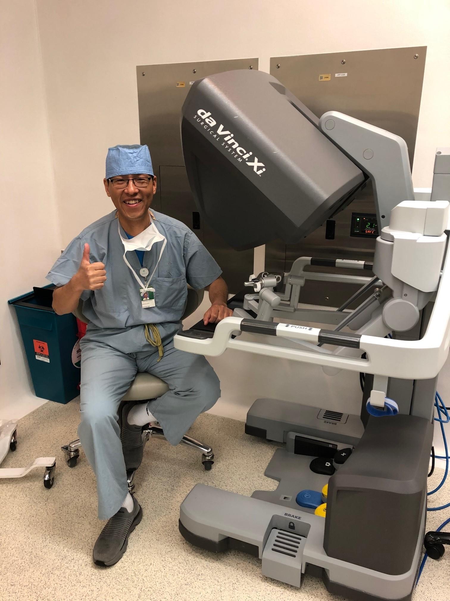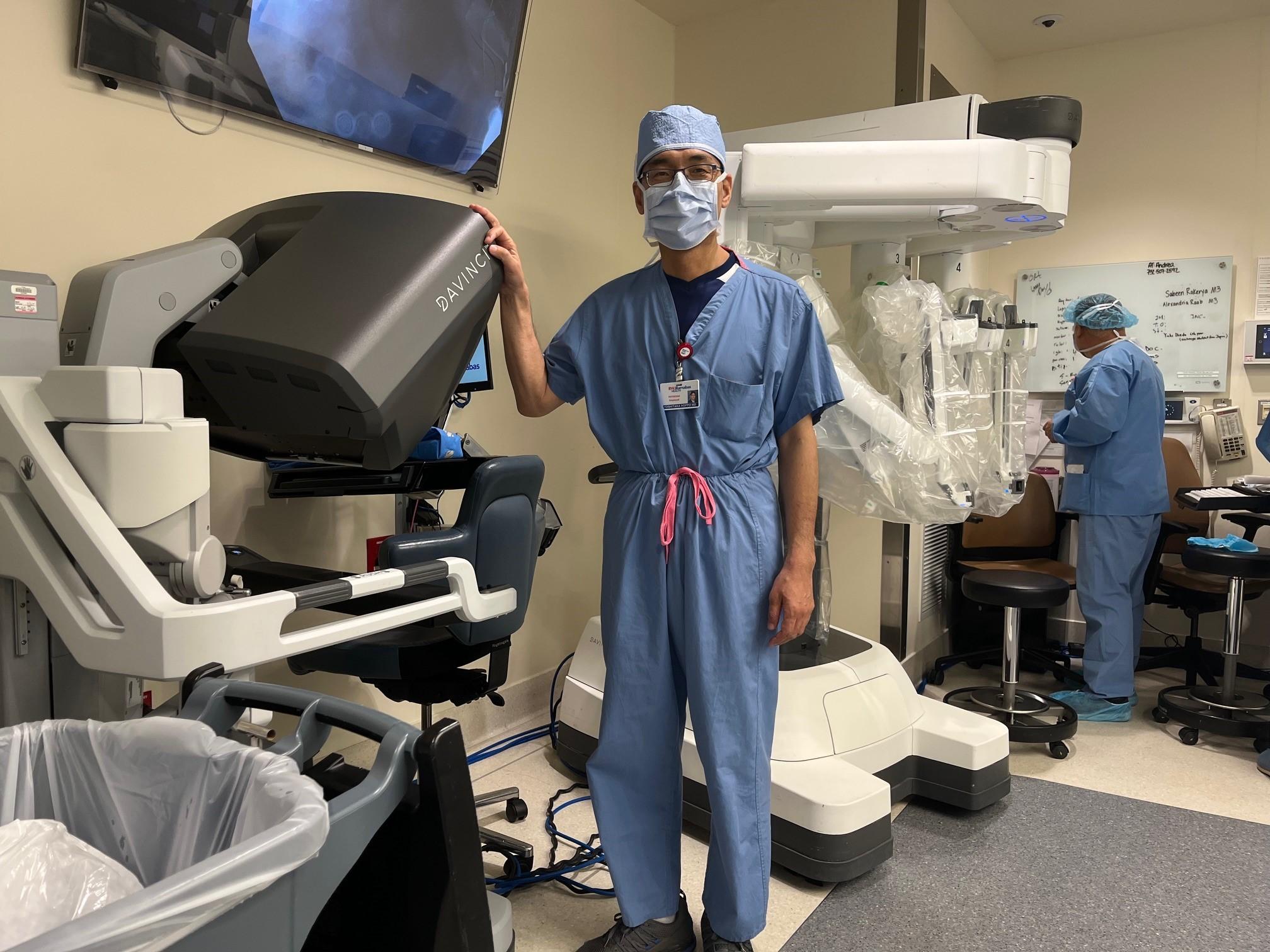 手術支援ロボットDaVinciと、今回のインタビューを受けてくださった北方敏敬先生